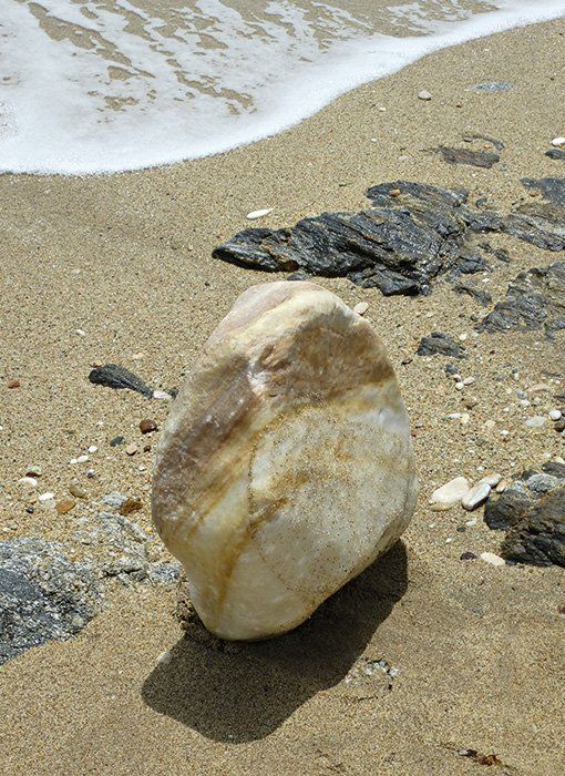 Mit aufmerksam suchendem Blick finde ich meine Steine in der Natur. Sie sprechen für die jeweilige Landschaft und deren Geschichte und bieten mir gleichzeitig ihre eigenen Charakteristika wie die ursprüngliche Form, Struktur und Farbe an.